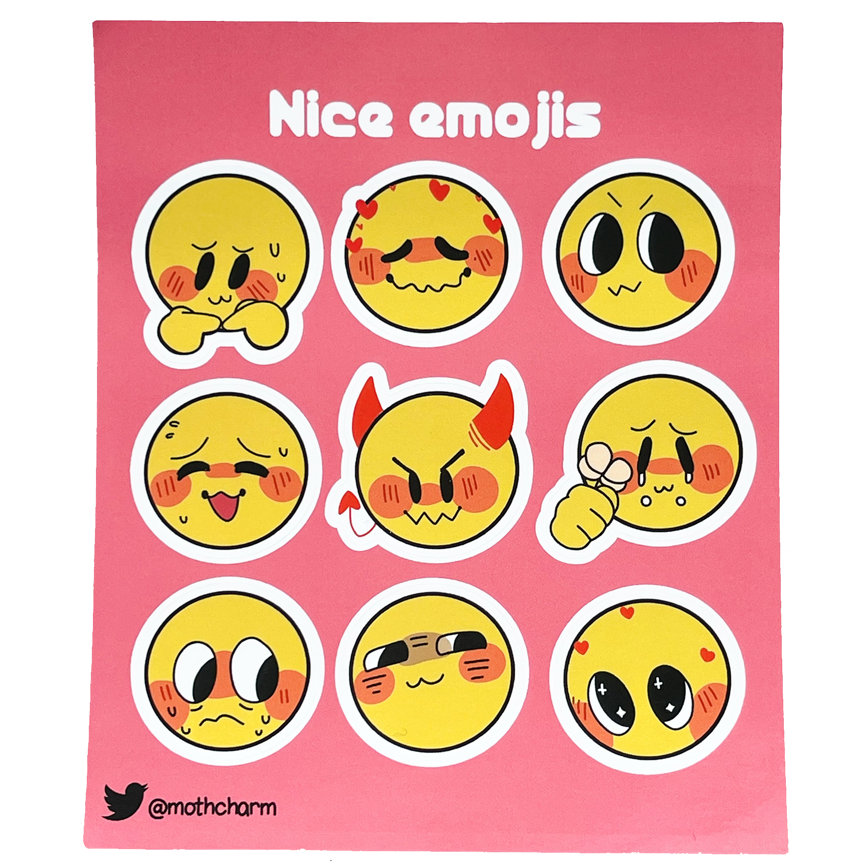 A set of 9 stickers featuring various emojis! Paste them on any surface.